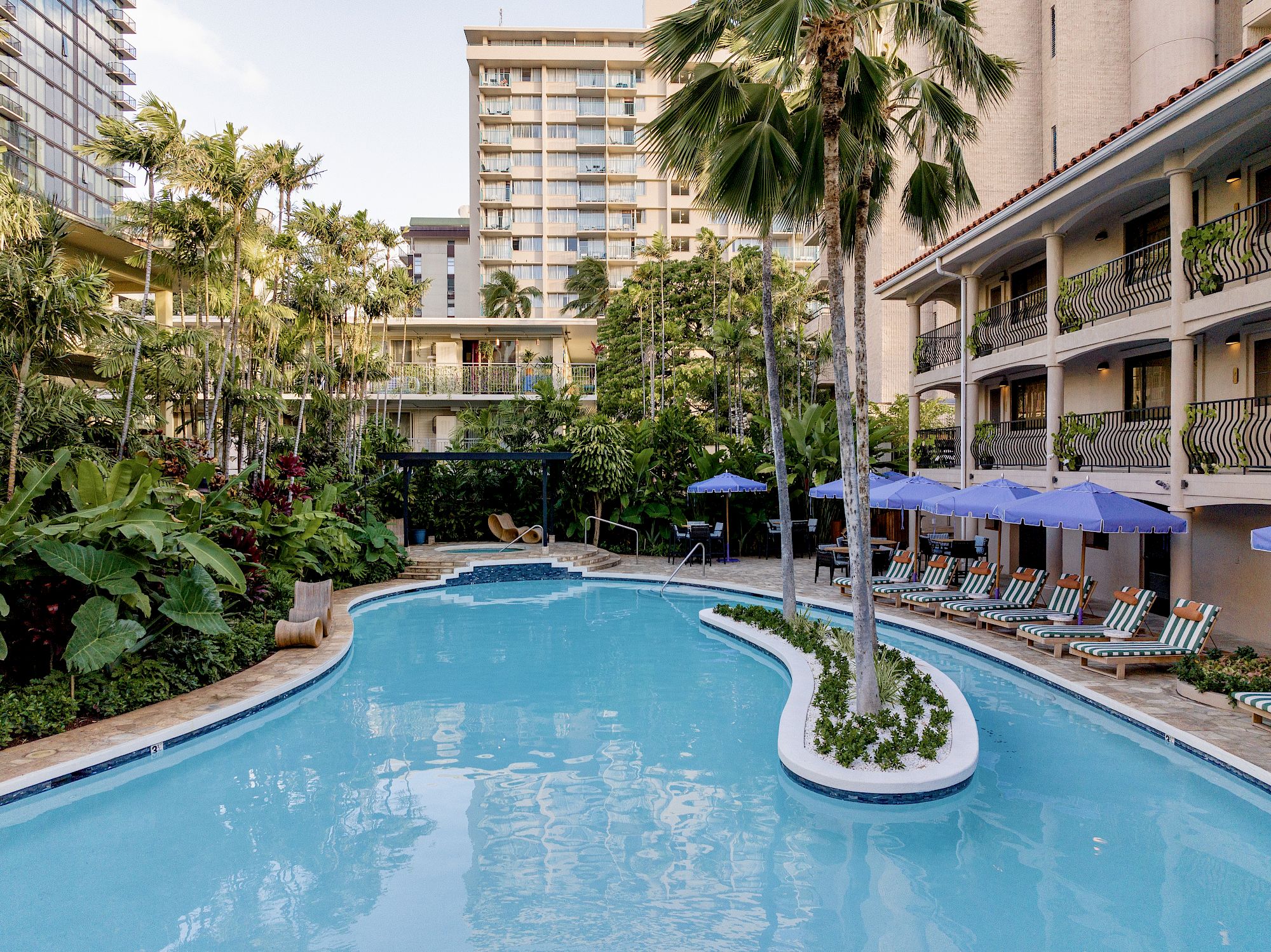 - Tropical playground — Lagoon-style pool framed by palms and good music